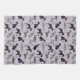 Les chiens Schnauzer mignons en noir, sel et poivre et les manteaux noirs et argent s'assoient, se tiennent et se retournent avec des os de chien éparpillés et des empreintes de pattes sur un arrière - plan violet clair.