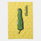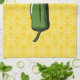 Un piment de shishito vert, également connu sous le nom de kkwari-gochu en coréen, est décoré de motifs inspirés par les motifs coréens et s'assied sur un arrière - plan jaune avec une version plus petite du même motif et un étiquette de script dans le coin. Ce poivre doux est consommé partout en Corée et au Japon, crus et cuits.