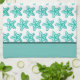 Montrée sur une serviette blanche, cette serviette de cuisine présente des images d'étoiles de mer dans l'eau et des couleurs turquoises. Customisez cet objet ou achetez comme indiqué.