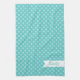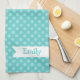 Serviette de cuisine turquoise mignonne de pois avec l'étiquette nommé fait sur commande