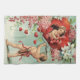 La carte postale vintage de Valentine dépeignant une fille, un cupidon, des coeurs, et des fleurs