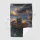 Jetez un coup d'oeil à la magie de la saison des Fêtes avec cette illustration magnifiquement détaillée, montrant un chien fier assis dans un bateau à la décoration festive, glissant à travers un lac serein de Noël. Les lumières scintillantes des pins voisins se reflètent dans l'eau, projetant une lumière chaude et festive qui renforce l'ambiance cosy. Des ornements pendent des côtés du bateau, tandis que des lanternes brillantes éclairent le chemin, créant une scène qui capture l'essence véritable de la chaleur et de la joie de Noël. Cette oeuvre nostalgique apporte une touche de magie de vacances à tout espace, parfait pour ceux qui chérissent l'esprit de la saison.
