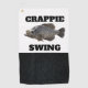 "Crappie Swing" un jeu de mots amusant pour le pêcheur Crappie passionné sur le terrain de golf. Cette serviette de golf fait un grand cadeau pour le pêcheur qui aime l'extérieur et passer une journée sur le terrain de golf. Le design de cette serviette est orné d'un trophée de crappie. La blague ultime papa pour la personne qui aime un bon jeu de golf.