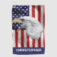 Attaquer la tête d'un aigle chauve au-dessus du drapeau américain. Une serviette de golf patriotique pour tout le monde. Nom du modèle personnalisable en bas. Vous pouvez modifier ou supprimer le nom. Vous pouvez transférer cette conception à un certain nombre d'autres serviettes. Si vous devez changer la police, la couleur de police, la couleur de l'arrière - plan; si vous devez ajuster l'image à la zone imprimable, veuillez utiliser le bouton "Modifier la conception" ou "Cliquez pour customiser plus loin" sous le lien "Détails". Cette belle serviette se trouve dans la collection "Sports" ou dans le département "Sports, Jouets & Jeux"—>"Sports & Outdoor"—>"Sports Equipment"—>"Golf"—>"Golf"—>"Golf Serviettes". Un choix de 16 aigles sur seize serviettes de golf. Achetez-en un, amusez-vous et soyez heureux.