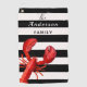 Bandes de style nautique en noir et blanc classique. Décoré d'une grande langouste rouge. Modèle pour votre nom de famille, lettres noires et blanches. L'été, élégant et amusant, parfait pour une maison côtière et la vie extérieure!