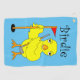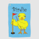 Birdie en texte bouclé avec un poussin jaune tenant un club de golf et le drapeau dans un trou de golf est un drôle de design cadeau pour les golfeurs.