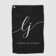Black Modern Script Girly Feminine Monogramme Nom Golf Serviette