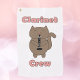 Aimez-vous les serviettes de golf mignonnes ? Cette serviette de golf a un chat marron jouant la clarinette avec les mots clairinet équipe en rose.