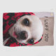 Chihuahua mignon avec le texte Je vous wuff - Valentines amoureux de les chiens idée cadeau. Drôle adorable chien mou blanc avec de grands yeux ronds, nez noir, langue qui sort et bandana rouge sur la tête.