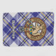 Clan MacPherson crête badge entouré d'une sangle et boucle sur la robe bleue arrière - plan tartan. Texte personnalisé.
