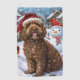 Ce design festif reflète l'esprit joyeux de la période des fêtes, avec un adorable petit portant un chapeau de Père Noël. Le chien est niché dans un pays des merveilles hivernales, avec un bonhomme de neige, un sapin de Noël décoré et des cadeaux joliment emballés. Les flocons de neige tombent doucement, ajoutant une touche magique à la scène, tandis que les couleurs vives des décorations de vacances créent une atmosphère chaleureuse et joyeuse.