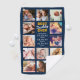 Serviette de fête des pères personnalisée avec un arrière - plan bleu qui peut être changée en n'importe quelle couleur, 13 photos de famille, les mots "meilleur papa jamais", vos noms d'enfants, et leurs anniversaires.