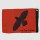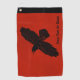 Une simple silhouette noire d'un Corbeau (Corvus corax) sur une image arrière - plan rouge, à l'aspect cuir. L'image du corbeau a reçu un léger effet "rugueux" ou "usé". Ajoutez votre propre texte.