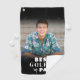 This custom golf towel features your own photo printed in the center with a smooth black gradient at both the top and bottom. The lower gradient includes white text that reads “Best Golfer By Par,” which you can personalize to say anything—like “Best Dad,” “Best Son,” “Best Grandpa,” or any short message that fits.