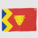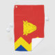 Golf Towel avec un design avec le drapeau de la ville de Birmingham en Angleterre, Royaume-Uni (Royaume-Uni de Grande-Bretagne et d'Irlande du Nord). Un drapeau rouge avec la tête d'un taureau jaune au centre. Le drapeau est utilisé depuis 2015.