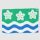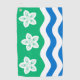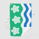 Golf Serviette avec design avec un drapeau du comté historique de Cumberland, en Angleterre, Grande-Bretagne; drapeau vert avec trois fleurs Parnassus et des vagues blanches et bleues