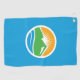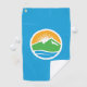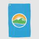 Golf Towel a design avec le drapeau de Provo, Utah. Un drapeau bleu avec le logo de Provo City au centre. Le logo représente le lac de l'Utah et les sommets de montagne avoisinants avec le soleil levant en arrière - plan