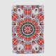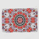 Kaléidoscope circulaire fait à partir d'une image d'échecs rouges et blancs, les dix parties ressemblent à des échecs ou à de grands pixelisés.