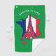 C'est un élégant patriotique vert AJOUTÉ À la serviette de golf Monogram de PARIS, avec le contour de la carte de la France dans le drapeau TRICOLORE de la FRANCE. En haut, on peut lire ADDICTED TO PARIS. La tour Eiffel est un portrait graphique de la Tour Eiffel et il y a des groupes de coeurs rouges. Le cap courbé sur cette serviette de golf patriotique Paris Lover est PERSONNALISABLE, vous pouvez donc remplacer par votre salutation préférée ou supprimer. Il y a aussi un MONOGRAMME PERSONNALISABLE en bas à droite. Vous pouvez choisir la couleur arrière - plan de cette serviette de golf parisienne que vous préférez parmi les options disponibles.