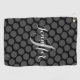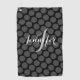 Motif pointillé gris ardoise sur arrière - plan noir avec nom de script élégant et monogramme centré sur serviette
