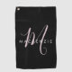 Élégant Noir Noir Blush Pink Script Monogram Serviette de golf. Un élégant monogramme Blush Pink combiné à une police blanche de san-serif propre donne un look contemporain.