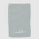 Elégant Sage Vert Monogramme Nom Script Signature Personnalisé Serviette de golf personnalisée. Ce délicat design minimaliste de couleur claire avec prénom dans une jolie calligraphie de police de queue d'écharpe (ou typographie) à la main sur arrière - plan vert sauge ou vert poussiéreux. Ils sont faciles à customiser. Grand cadeau d’anniversaire féminin élégant, aussi pour la journée de la mère, anniversaire, fête de bachelorette, mariage, douche nuptiale et C’est pour la fille qui aime les choses propres et minimalistes uniques.