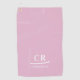 Feminine pink towel featuring a clean white monogram with two initials and a name separated by a sleek divider line. The minimalist layout and crisp typography create a fresh, modern look that works beautifully for golf, sports, travel, or everyday use. Personalize using the simple template to add your own initials and name. Designed for gifting or daily routines, this personalized towel brings a refined, feminine touch to her accessories. All colors and text can be edited in the design tool.