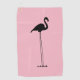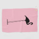 Ce modèle de serviette de golf soyeux présente une silhouette/ombre noire d'un flamant aux jambes excessivement longues, sur un arrière - plan rose.