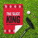 Cette drôle de serviette de golf typographique aux bordures de Jacquard, qui présente le douteux "titre royal" de "The Slice King" (et, en gros caractères, la barre latérale "est royalement vissé avec sa balançoire"), est l'idée cadeau parfait pour le golfeur qui a tendance à frapper sa balle avec beaucoup de courbe et simépris! Portez fièrement votre mauvaise balançoire comme un badge d'honneur. Conception et copie © W.H. Sim. Tous droits réservés. Voir plus sur zazzle.com/wordsofwhimsy