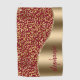 Ce design présente un motif tacheté en métal bordeaux et or à gauche, et une image en faux feuille d'or à droite en forme d'onde bordée d'une parties scintillant en faux or. Personnalisez-le avec votre nom ou votre monogramme dans une police de brosse manuscrite bordeaux stylisée.