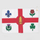 The flag of Montreal prominently displays a bold red cross dividing a white field into four quarters, each adorned with a floral emblem representing the city’s founding communities: the fleur-de-lis for the French, the rose for the English, the thistle for the Scots, and the shamrock for the Irish. At the center sits a vivid red maple leaf symbolizing Canadian unity and multicultural pride. This meaningful design adds a unique and eye-catching flair to the towel, making it a standout addition to your golf gear.
