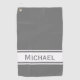 Serviette De Golf Gris Blanc Gris Bande Moderne Nom Monogramme