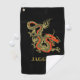 Un dragon chinois noir et féroce surligné d'or orne cette serviette de golf. Les accents rouges mettent en évidence la mâchoire, la tête et la colonne vertébrale du dragon. Votre nom est écrit en or gras ci-dessous.