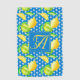 Add the bride and grooms first name initials (small letters) and their joint married surname initiinitiative (large letter) to create a stylish monogram gift for the newlywed couple. The pattern here is a stunning yellow and green lemon tree design against a beautiful ocean blue and white patterned background.