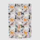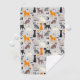 White cat, black cat, tabby cat, persian cat, Siamese cat, tuxedo cat with paw prints on a light colored background.