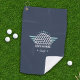 Parfait pour les papas, les retraités ou toute personne qui aime le golf, cette serviette de golf personnalisée en bleu marine riche dispose d'un logo de balle de golf qui peut être customisé avec son nom.