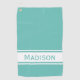 Serviette De Golf Lumière Turquoise Bande Blanche Nom moderne Monogr