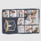 Célébrez un grand-père amoureux du golf cette Fête des pères ou la Journée des grands-parents avec cette magnifique serviette de golf de collage photo personnalisée. Le design bleu marine comprend huit photos carrés (une grande et sept petites) avec un badge sur le golf portant les mots "Certified Best Baba By Par" avec des lauriers verts et un sac de golf.