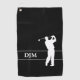 Serviette De Golf Monogramme blanc sur Noir Silhouette Golfer