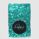 Serviette De Golf monogramme élégant aqua nom de parties scintillant