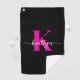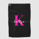 Cette serviette de golf simple et moderne avec votre prénom dans une police de script tendance en blanc et votre première initiale dans une police casquette moderne en rose chaud sur noir est parfait pour vous. C'est design, tendance et pourtant très classique. C'est unique - comme vous ! Prenez un couple afin que vous ayez toujours un propre à portée de main.