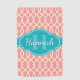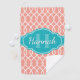 Motif de treillis rose et ogee élégant et tendance dans l'arrière - plan, surmonté d'un étiquette bleu turquoise clair avec un nom personnalisable et un modèle monogramme.