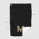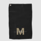 Créez Votre Propre Personnalisé Personnalisé Black Modern Script Nom Monogram Golf Towel. Cette serviette de golf chic et féminine présente un design monogramme élégant avec une initiale en or plat (note : il s'agit d'une couleur d'or imprimée, non métallique ou brillante) sur un arrière - plan noir élégant et un nom de script noir classique pour une touche personnalisée. Imprimée sur un côté, cette serviette ajoute une touche unique et élégante à tout sac de golf. Il fait un cadeau amusant et sophistiqué, parfait pour les anniversaires, les fêtes, la fête des mères, ou toute occasion spéciale lorsque vous voulez célébrer quelqu’un - ou vous régaler! Idéal pour les amateurs de golf qui apprécient un mélange de style et de personnalisation tout en restant pratique sur le terrain.