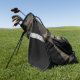 Serviette De Golf Nom blanc, Bande argentée brossée, Noir