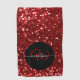 Une serviette de golf décorée d'un monogramme classique et élégant en rouge sur un cercle noir élégant accompagné d'une parties scintillant faux rouge. Ajoutez un nom avec des swashes tendance pour le rendre unique. Si vous avez besoin d'aide ou d'articles correspondants, veuillez me contacter.