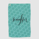 Serviette De Golf Nom du script de point Polka Turquoise classique