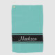 Serviette De Golf Nom du script Turquoise de bandes noires lumineuse