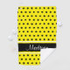 Cette conception a un arrière - plan jaune lumineux avec le pois noir et le noir, les rayures jaunes et blanches lumineuses. Le nom est dans une police de manuscrit et peut être customisé utilisant le gisement de modèle.