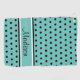 Cette conception a un fond turquoise clair avec le pois noir et les rayures de sarcelle d'hiver, blanches et noires légères. Le nom est dans une police de manuscrit et peut être customisé utilisant le gisement de modèle.