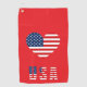 Gardez votre équipement propre et votre esprit fort avec cette serviette de golf Patriotic Heart arborant le drapeau américain. Soft, absorbant, et conçu avec un motif en forme de coeur d'étoiles et de rayures, il ajoute une touche personnelle et patriotique à votre jeu. Un accessoire pratique avec une audacieuse fierté américaine pour chaque tour.